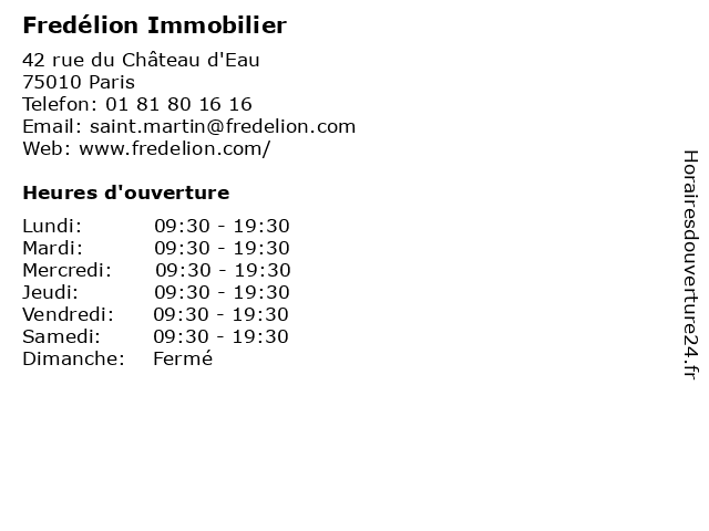 | Vendredi | 09:30-19:30 |