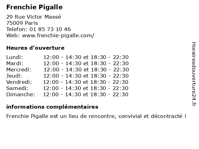 | Dimanche | 12:00-14:30 et 18:30-22:30 |