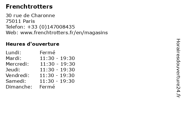 1 Frenchtrotters (Distance: 1,27 km) 128 rue Vieille du Temple, 75003 Paris accessoires, chaussures, frenchtrotters, habillement, mode, pret-a-porter, vetements 2 Petite Mendigote (Distance: 0,00 km) 30 rue de Charonne, 75011 Paris accessoires, chaussures, femme, magasin, maroquinerie, mendigote, mode, petite 3 French Trotters (Distance: 0,00 km) 30 rue de Charonne, 75011 Paris accessoires, boutique, french, mode, trotters, vetements 4 Sessùn (Distance: 0,03 km) 34 rue de Charonne, 75011 Paris accessoires, habillement, mode, sessun, sessùn, vetement 5 SoWeAre (Distance: 0,12 km) 13 Rue Keller, 75011 Paris bijoux, chaussures, cuir, femme, hommes, mode, soweare 6 Vib’s (Distance: 0,18 km) 69 Rue du Faubourg Saint-Antoine, 75011 Paris magasins, mode, vetements, vib’s |