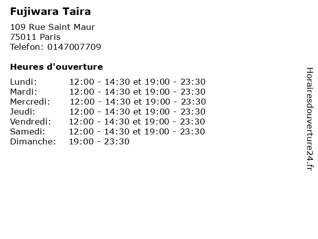 | Samedi | 12:00-14:30 et 19:00-23:30 |