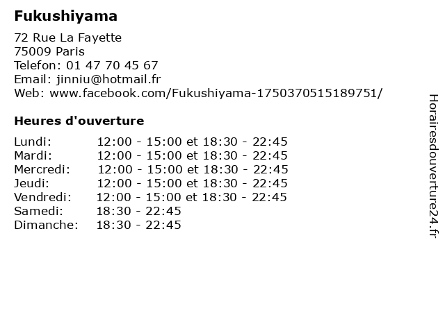 | Vendredi | 12:00-15:00 et 18:30-22:45 |