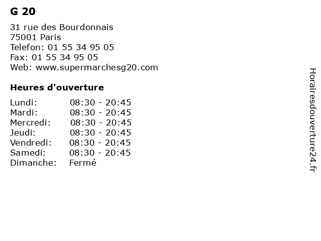 Termes de recherche pour G 20:supermarket, 20, dépôt de pain, photocopieur, carte bleue, carte g2, dépôt pressing, livraison à domicile |