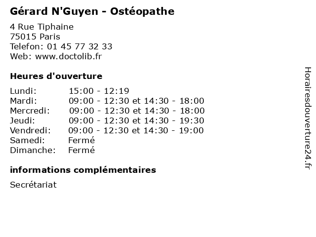 | Jeudi | 09:00-12:30 et 14:30-19:30 |