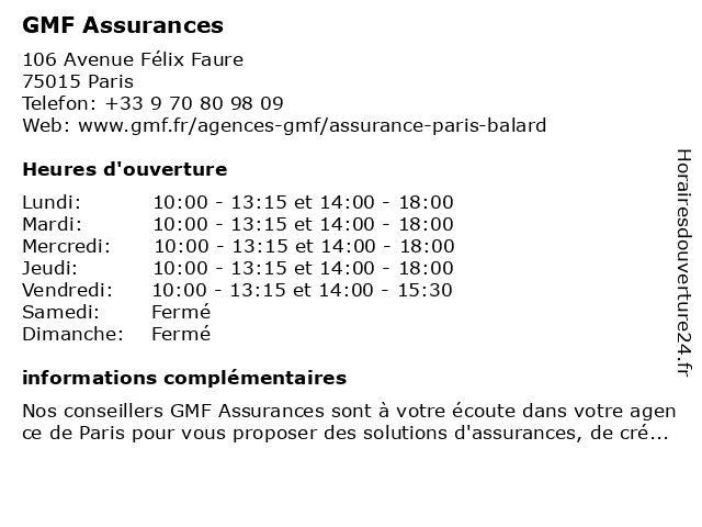 2 GMF Assurances (Distance: 3,17 km) 34 Rue Jean Pierre Timbaud, 92130 Issy-les-Moulineaux assurances, gmf 6 |