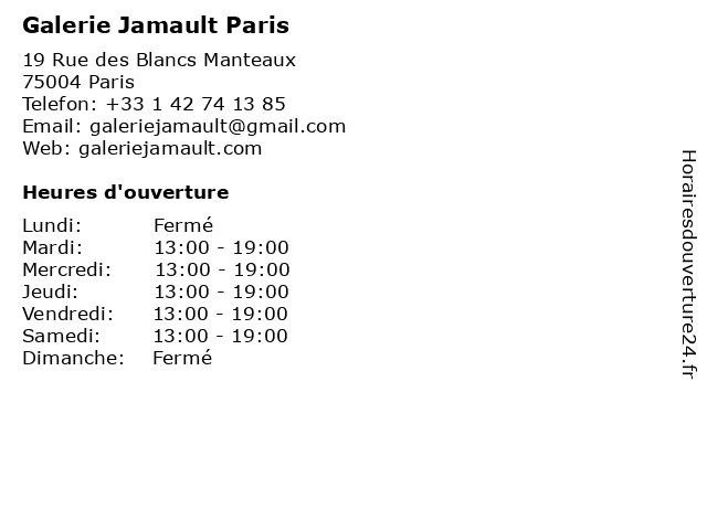 | Samedi | 13:00-19:00 |