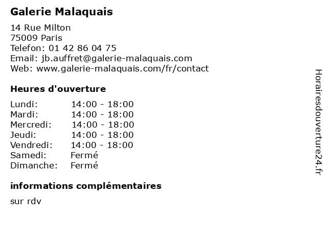 1 Galerie Barbier (Distance: 0,03 km) 10 Rue Choron, 75009 Paris arts, barbier, dessins, expositions, galerie, peintures, sculptures, tableaux 2 Galerie Tourbillon (Distance: 0,47 km) 15 rue Drouot, 75009 Paris arts, exposition, galerie, sculptures, tourbillon 3 Galerie du 9ème Art (Distance: 0,47 km) 4 Rue Cretet, 75009 Paris 9e, 9ème, art, dessins, du, expositions, galerie, planches, vente 4 Galerie Chauvy (Distance: 0,48 km) 16 Rue de la Grange Batelière, 75009 Paris arts, chauvy, dessins, expositions, galerie, peintures, sculptures, tableaux 5 Seigle Galerie & Atelier (Distance: 0,54 km) 63 Passage Jouffroy, 75009 Paris artistiques, atelier, galerie, peinture, restaurations, restaurons, seigle 6 Galerie Édouard Montassut (Distance: 0,56 km) 61 Rue du Faubourg Poissonnière, 75009 Paris arts, dessins, expositions, galerie, montassut, peintures, sculptures, tableaux, édouard |