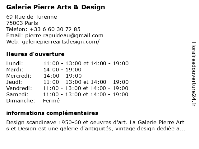 | Samedi | 11:00-13:00 et 14:00-19:00 |