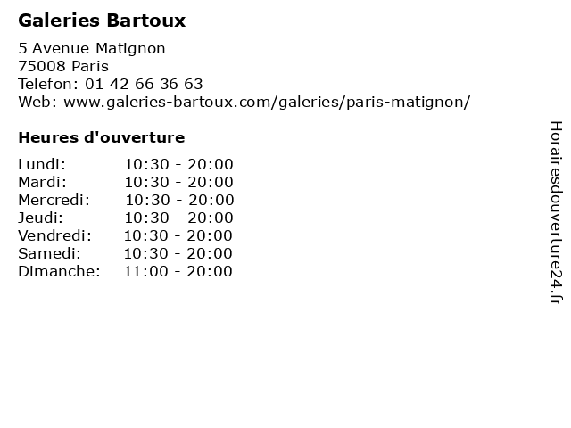 | Jeudi | 10:30-20:00 |