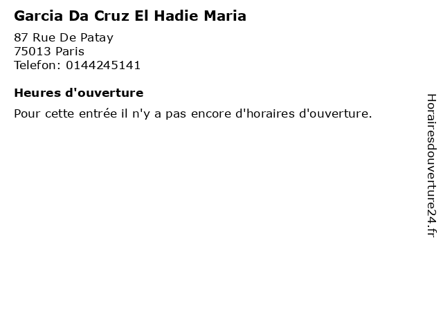 | Appeler Garcia Da Cruz El Hadie Maria | |