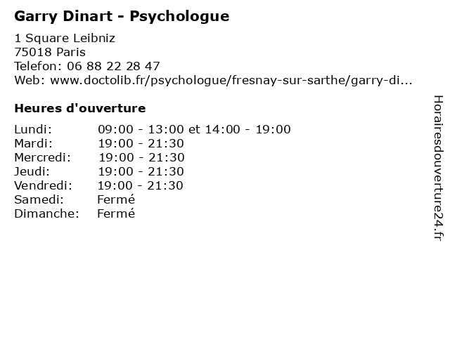 | Lundi | 09:00-13:00 et 14:00-19:00 |