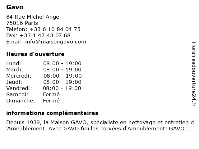 Depuis 1939, la Maison GAVO, spécialiste en nettoyage et entretien d'Ameublement. Avec GAVO fini les corvées d'Ameublement! GAVO décroche et raccroche vos rideaux, ravive vos tapis, canapés, mo...