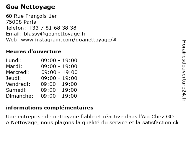 | Lundi | 09:00-19:00 |