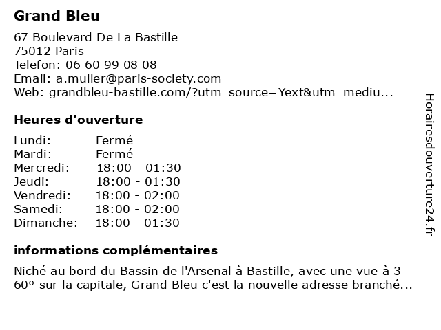 Termes de recherche pour Grand Bleu:bar, grand, pizzeria, bleu, restaurant italien, salle de danse, restaurant de tapas, brasserie en plein air |