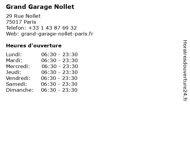 1 Grand Garage Nollets - Car park (Distance: 0,04 km) 35 Rue Nollet, 75017 Paris car, car parking, garage, grand, nollets, park, services 2 Crèche collective Nollet (Distance: 0,10 km) 52 / 54 Rue Nollet, 75017 Paris collective, crèche, crèches, nollet, services, services à la personne 3 Etre-là Grand Paris (Distance: 0,22 km) 39 avenue de Clichy, 75017 Paris accompagnement, association, bénévole, développement, etre, grand, là, palliatifs, paris, soins 4 IMEF - Centre d'Imagerie Médicale Nollet (Distance: 0,53 km) 114 Rue Nollet, 75017 Paris centre, d'imagerie, imef, médicale, nollet 5 Grand Garage Haussmann (Distance: 1,13 km) 43 Rue de Laborde, 75008 Paris garage, grand, haussmann, parking, payant 6 Maître Claire Le Grand - Avocate (Distance: 1,22 km) 163 Boulevard Malesherbes, 75017 Paris avocate, avocats, cabinet, claire, conseils, contentieux, grand, juridique, justice, le, litiges, maître, services |