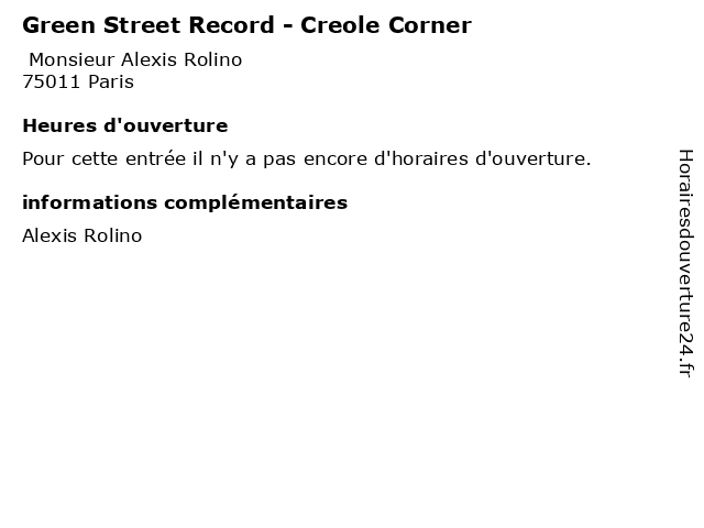 Termes de recherche pour Green Street Record - Creole Corner:restaurants, green, corner, street, alexis, créole, record, rolino |