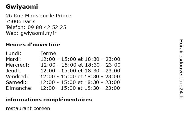 | Dimanche | 12:00-15:00 et 18:30-23:00 |