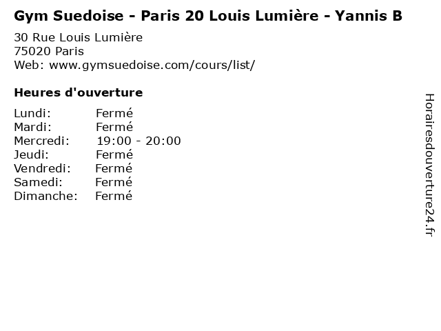 1 Gym Suedoise - Paris 20 Louis Lumière - Alexia G (Distance: 0,00 km) 30 Rue Louis Lumière, 75020 Paris 20, alexia, centre, cours, gym, l'exercice, la santé, le sport, les muscles, louis, lumière, paris, suedoise 2 Gym Suedoise - Paris 20 Louis Lumière - Aurelie LMFAO (Distance: 0,00 km) 30 Rue Louis Lumière, 75020 Paris 20, aurelie, centre, cours, gym, l'exercice, la santé, le sport, les muscles, lmfao, louis, lumière, paris, suedoise 3 Une Pièce en Plus Paris 20 - Pyrénées (Distance: 0,87 km) 57 Rue des Pyrénées, 75020 Paris 20, box a louer, en, garde meuble, paris, pièce, plus, pyrénées, self stockage, stockage, une 4 Centre d'Action Sociale - Paris 20 (Distance: 1,24 km) 62 rue du Surmelin, 75020 Paris 20, aides, centre, d'action, de, paris, social, sociale, ville 6 Piscine Jean Boiteux ex Reuilly / Du 20 février 2016 au 06 mars 2016 (Distance: 2,48 km) 13 rue Hénard, 75012 Paris 06, 20, 2016, au, boiteux, du, equipement, ex, février, jean, joyeuse, l'heure, livre, mars, médiathèque, piscine, reuilly, services |