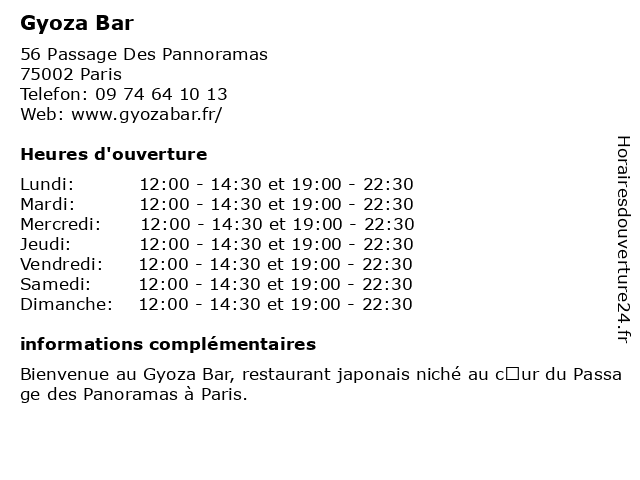 | Dimanche | 12:00-14:30 et 19:00-22:30 |