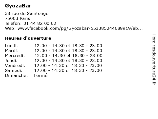 | Samedi | 12:00-14:30 et 18:30-23:00 |