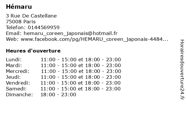 | Lundi | 11:00-15:00 et 18:00-23:00 |