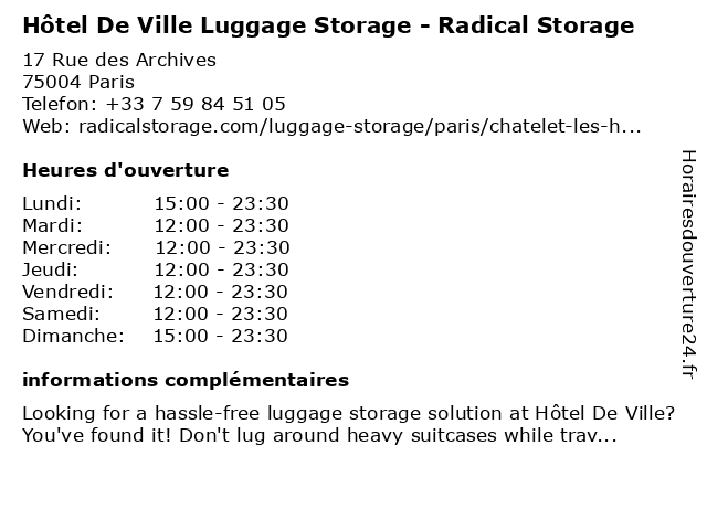 1 Luggage Storage Hôtel De Ville - Radical Storage (Distance: 0,00 km) 17 Rue des Archives, 75004 Paris de, hôtel, luggage, luggage storage, luggage storage near me, radical, storage, ville 2 Radical Storage - Luggage Storage The Centre Pompidou (Distance: 0,25 km) 77 Rue de la Verrerie, 75004 Paris centre, luggage, luggage storage, luggage storage near me, pompidou, radical, storage, the 3 Nannybag Luggage Storage - Fontaine Stravinsky (Distance: 0,25 km) 77 Rue De La Verrerie, 75004 Paris fontaine, luggage, nannybag, storage, stravinsky 4 Luggage Storage Le Marais - Radical Storage (Distance: 0,33 km) 77 Rue du Temple, 75003 Paris le, luggage, luggage storage, luggage storage near me, marais, radical, storage 5 Luggage Storage Le Marais - Radical Storage (Distance: 0,33 km) 77 Rue du Temple, 75003 Paris le, luggage, luggage storage, luggage storage near me, marais, radical, storage 6 Nannybag Luggage Storage - Centre Pompidou (Distance: 0,39 km) 119 Rue Saint-martin, 75004 Paris centre, luggage, nannybag, pompidou, storage |