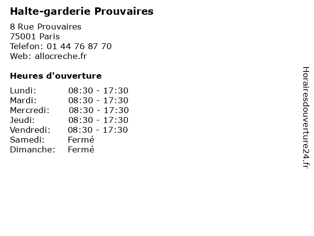 1 Halte-Garderie Municipale des Prouvaires (Distance: 0,01 km) 8 Rue Prouvaires, 75001 Paris accueil, creche, des, enfant, garderie, halte, municipale, prouvaires, éveil 2 Halte-garderie Saint Roch (Distance: 0,97 km) 12 Rue Saint Roch, 75001 Paris crèches, garderie, halte, roch, saint, services, services à la personne 3 Halte-Garderie Municipale des Gravilliers (Distance: 1,00 km) 24 Rue des Gravilliers, 75003 Paris accueil, creche, des, enfants, garderie, gravilliers, halte, municipale 4 Halte Garderie Miribel Ribambelle (Distance: 1,30 km) 10 Rue de la Paix - Quartier du Trèves, 01700 Miribel caregivers houses, child care, family home, garderie, halte, home care, kindergartens, micro-nurseries, miribel, parental home, ribambelle 5 Halte-Garderie Municipale des Arquebusiers (Distance: 1,68 km) 2 Rue des Arquebusiers, 75003 Paris accueil, arquebusiers, creche, des, enfants, garderie, halte, municipale 6 Halte-garderie Tour d'Auvergne (Distance: 1,94 km) 15 Rue de la Tour d'Auvergne, 75009 Paris crèches, d'auvergne, garderie, halte, services, services à la personne, tour |
