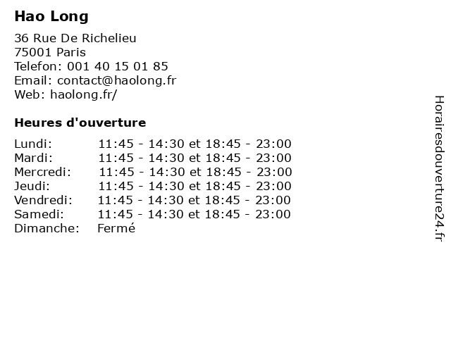 | Lundi | 11:45-14:30 et 18:45-23:00 |