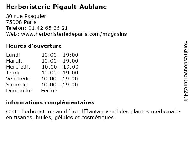 1 L'Herboristerie de Paris (Distance: 0,00 km) 30 Rue Pasquier, 75008 Paris de, l'herboristerie, médecine alternative, paris, vitamines et compléments alimentaires 2 Herboristerie du Palais Royal par Michel Pierre (Distance: 1,32 km) 11 Rue des Petits Champs, 75001 Paris du, herboristerie, michel, palais, par, pierre, royal 3 Herboristerie du Montparnasse (Distance: 3,31 km) 38 rue du Montparnasse, 75006 Paris bio, du, herboristerie, magasins, montparnasse, produits 4 Herboristerie Lila Sobanski (Distance: 3,63 km) 71 Avenue Paul Doumer, 75016 Paris cosmétique, herboristerie, lila, parapharmacie, pharmacie, phytothérapie, sobanski 5 Herboristerie Ormenis (Distance: 4,98 km) 345 rue des Pyrenees, 75020 Paris herboristerie, médicinales, ormenis, paris, plantes 6 Flore Aublanc - Ostéopathe (Distance: 5,58 km) 52 Avenue Philippe-Auguste, 75011 Paris aublanc, flore, médecin, médecine, médical, ostéopathe, pharmaceutique, secretariat, traitement |