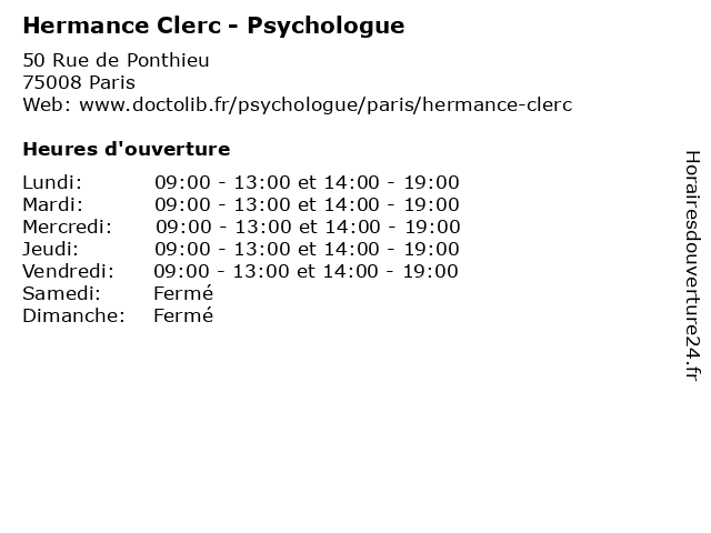 | Lundi | 09:00-13:00 et 14:00-19:00 |