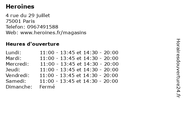| Lundi | 11:00-13:45 et 14:30-20:00 |