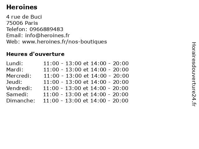 | Samedi | 11:00-13:00 et 14:00-20:00 |