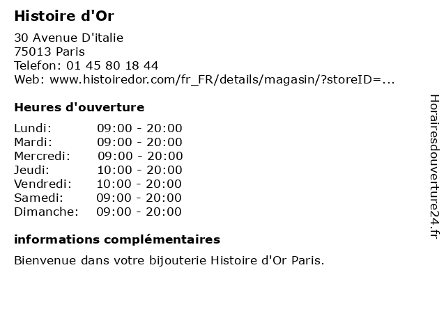 1 Histoire d'Or (Distance: 2,16 km) Avenue De Fontainebleau, 94270 Le-Kremlin-Bicetre achat de bijoux, bijoutier, création de bijoux, d'or, gravures sur bijoux, histoire, magasin de montres, négociant en or, réparation de bijoux, réparation de montres 2 Histoire d'Or (Distance: 2,88 km) Quai De Bercy, 94220 Charenton-Le-Pont achat de bijoux, bijoutier, création de bijoux, d'or, gravures sur bijoux, histoire, magasin de montres, négociant en or, réparation de bijoux, réparation de montres 3 Histoire d'Or (Distance: 3,12 km) 86 Rue De Rivoli, 75004 Paris achat de bijoux, bijoutier, création de bijoux, d'or, gravures sur bijoux, histoire, magasin de montres, négociant en or, réparation de bijoux, réparation de montres 4 Histoire d'Or (Distance: 3,57 km) 101 porte Rue Berger, 75001 Paris achat de bijoux, bijoutier, création de bijoux, d'or, gravures sur bijoux, histoire, magasin de montres, négociant en or, réparation de bijoux, réparation de montres 5 Histoire d'Or (Distance: 5,15 km) 4 Rue Du 8 Mai 1945, 75010 Paris achat de bijoux, bijoutier, création de bijoux, d'or, gravures sur bijoux, histoire, magasin de montres, négociant en or, réparation de bijoux, réparation de montres 6 Histoire d'Or (Distance: 5,56 km) 13 Rue d'Amsterdam, 75008 Paris cafe, chaussures, d'or, enfants, histoire, homme, mode femme, restaurant, service, sport |