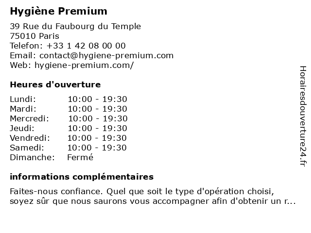 1 Hygiène Premium (Distance: 3,02 km) 60 Rue Monge, 75005 Paris cafards, dératisation, désinfection, désinsectisation, hygiene, hygiène, premium 2 Hygiène Premium (Distance: 3,46 km) 12 Bis av. de Clichy, 75018 Paris dératisation, désinfection, désinsectisation, hygiène, magasins, premium, services 3 Optical Premium (Distance: 1,96 km) 262 rue des Pyérénées, 75020 Paris lunettes, monture, optical, opticien, optique, premium, solaire, vue 5 HealthCity Premium Paris 5ème - St Germain des Prés (Distance: 2,69 km) 71 Boulevard Saint-Germain, 75005 Paris 5ème, business, des, fitness, germain, gym, healthcity, paris, premium, prés, st 6 Premium.Digital (Distance: 2,74 km) 26-28 Rue Danielle Casanova, 75002 Paris agences, digitale, marketing, premium.digital, pub, publicite |