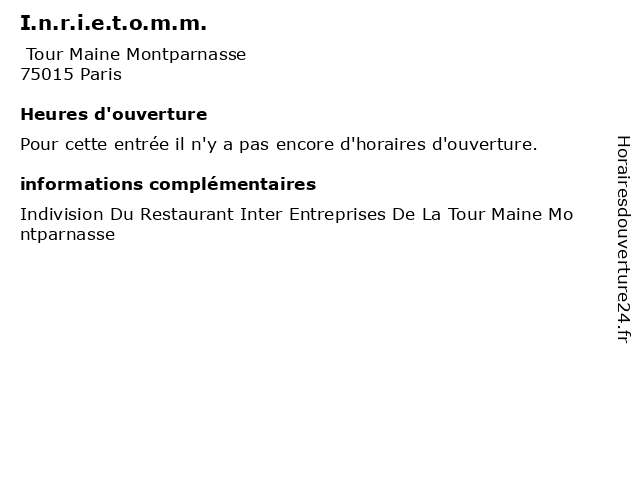 Termes de recherche pour I.n.r.i.e.t.o.m.m.:restaurant, tour, montparnasse, entreprises, maine, inter, biens, immobiliers, nra, bailleurs, indivision |