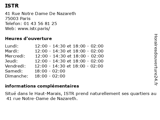 | Mercredi | 12:00-14:30 et 18:00-02:00 |