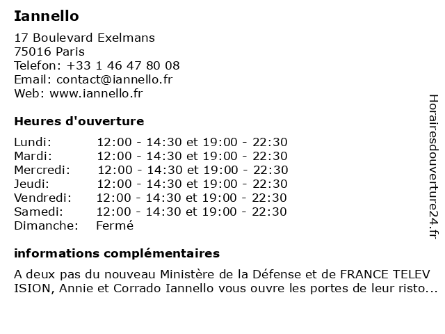 | Lundi | 12:00-14:30 et 19:00-22:30 |