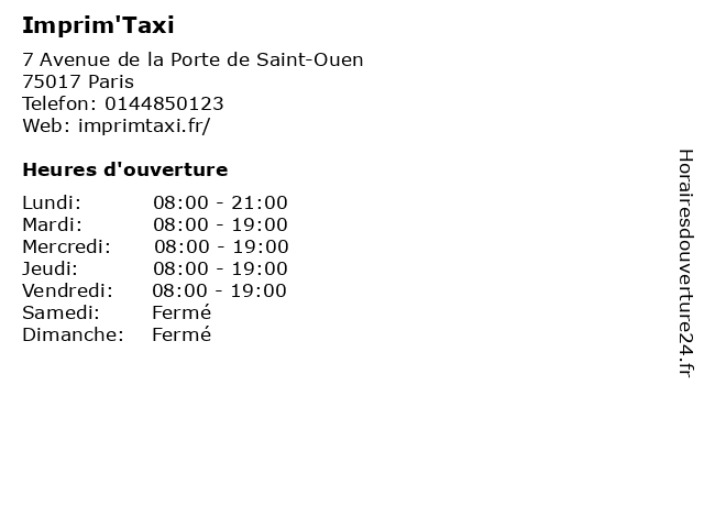 1 Station de Taxi (Distance: 0,05 km) 1 Avenue de la Porte de Saint Ouen, 75017 Paris de, station, taxi, trajets, voyages 2 Station de Taxi (Distance: 0,05 km) - Porte de St Ouen, 93400 Saint-Ouen de, station, taxi, trajets, voyages 3 Station de Taxi (Distance: 0,64 km) 86 Avenue de Saint Ouen, 75018 Paris de, station, taxi, trajets, voyages 4 Station de Taxi (Distance: 0,77 km) - Boulevard Leclerc, 92110 Clichy de, station, taxi, trajets, voyages 5 Station de Taxi (Distance: 0,79 km) - Face 102 Rue Damrémont, 75018 Paris de, station, taxi, trajets, voyages 6 Station de Taxi (Distance: 1,10 km) 1 Avenue de la Porte de Clignancourt, 75018 Paris de, station, taxi, trajets, voyages |