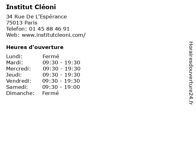 Horaires d'ouverture |
