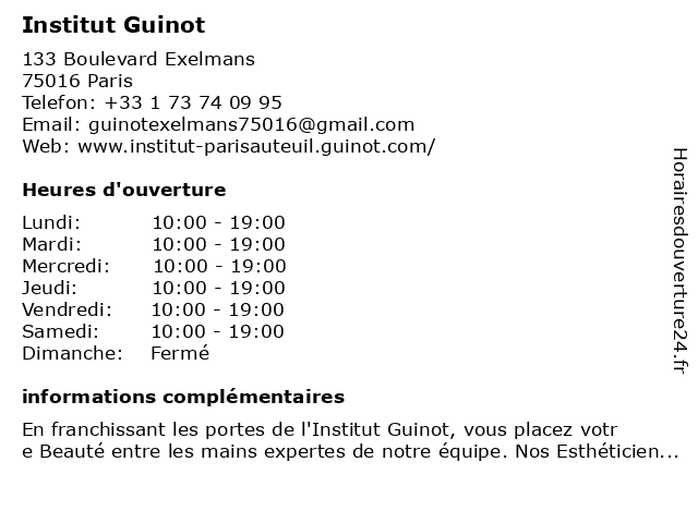 1 Institut Guinot (Distance: 5,24 km) 20 ter Rue de Bezons, 92400 Courbevoie anti cellulite, corps, guinot, institut, soins, visage, épilation 2 Institut Guinot (Distance: 5,58 km) 12 rue de Sèze, 75009 Paris beauté, guinot, institut, massages, soins, épilations 3 Institut Guinot (Distance: 8,40 km) 20 Rue du Bournard, 92700 Colombes beauté, esthétique, guinot, institut, massages, salon, soins 4 Institut Guinot (Distance: 8,76 km) 31 Place Louvois, 78140 Vélizy-Villacoublay beauté, esthétique, guinot, institut, massages, salon, soins 5 Institut Guinot (Distance: 9,67 km) 9 Boulevard de Reuilly, 75012 Paris beauté, esthétique, guinot, institut, massages, salon, soins 6 Institut Guinot (Distance: 11,16 km) 29 avenue de la Division Leclerc, 92160 Antony beauté, guinot, institut, relax, spa, épilation |