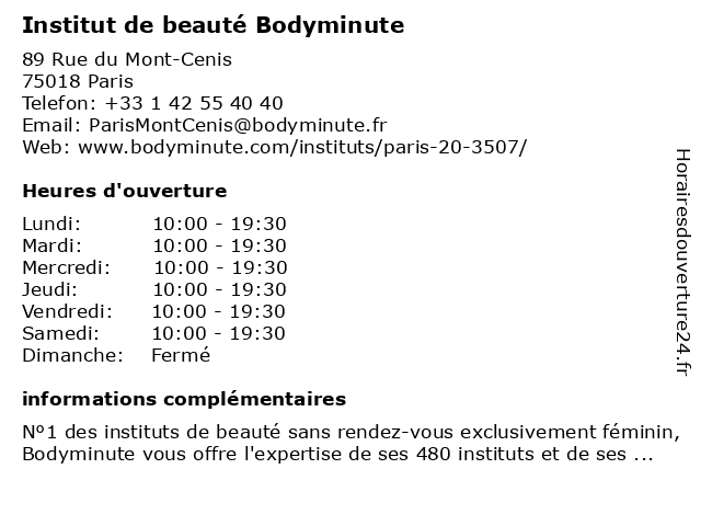 1 Institut de beauté Bodyminute (Distance: 0,94 km) 196 Rue Championnet, 75018 Paris beauté, bodyminute, de, institut 2 Institut de beauté Bodyminute (Distance: 1,64 km) 87 Avenue de Clichy, 75017 Paris beauté, bodyminute, de, institut 3 Institut de beauté Bodyminute (Distance: 1,93 km) 9 Rue des Batignolles, 75017 Paris beauté, bodyminute, de, institut 4 Institut de beauté Bodyminute (Distance: 2,50 km) 4 Rue du Faubourg Poissonnière, 75010 Paris beauté, bodyminute, de, institut 5 Institut de beauté Bodyminute (Distance: 3,52 km) 15 Rue de Lorraine, 92300 Levallois-Perret beauté, bodyminute, de, institut 6 Institut de beauté Bodyminute (Distance: 4,00 km) 86 Rue Louis Rouquier, 92300 Levallois-Perret beauté, bodyminute, de, institut |
