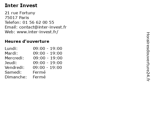 1 CO Invest (Distance: 0,41 km) 11 rue Ampère, 75017 Paris cabinet, co, conseil, gestion, invest, patrimoine 2 Alliage Invest (Distance: 0,73 km) 9 Rue Eugene Flachat, 75017 Paris alliage, holding, invest, sociétés 3 Crowdimo Invest (Distance: 0,75 km) 14 Rue de Monceau, 75008 Paris conseils, crowdimo, foncière, gestion, immobilier, invest, investissement, patrimoine 4 Réside Études Invest (Distance: 1,40 km) 42 avenue George V, 75008 Paris accompagnement, agence, immobilière, invest, maison, projets, réside, Études, études 5 Prefailles Lanvaux Invest (Distance: 1,41 km) 39 Rue De Liege, 75008 Paris holding, invest, lanvaux, prefailles, sociétés 6 Fonciere b2 Hotel Invest Sas (Distance: 1,68 km) Kleber 30 Avenue, 75116 Paris b2, bailleurs, biens, fonciere, hotel, immobiliers, invest, nra  |