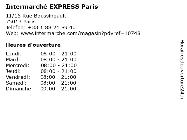 2 Intermarché EXPRESS Paris (Distance: 2,66 km) 12 Place farhat hached, 75013 Paris express, intermarché, paris 3 Intermarché EXPRESS Paris (Distance: 2,81 km) 36 Rue des Fossés Saint-Bernard, 75005 Paris express, intermarché, paris 4 Intermarché EXPRESS Paris (Distance: 3,79 km) 161 Avenue daumesnil, 75012 Paris express, intermarché, paris 5 Intermarché EXPRESS Paris (Distance: 4,63 km) 107 Avenue de la Bourdonnais, 75007 Paris express, intermarché, paris 6 Intermarché EXPRESS Paris (Distance: 4,66 km) 148 Rue du Temple, 75003 Paris express, intermarché, paris |
