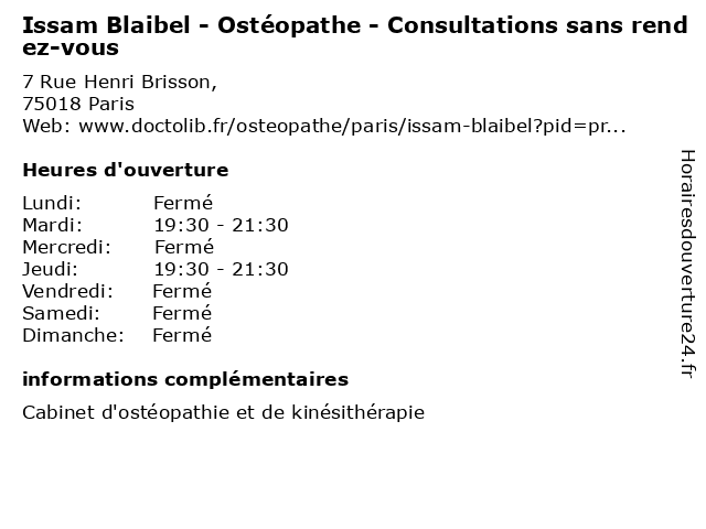 Termes de recherche pour Issam Blaibel - Ostéopathe - Consultations sans rendez-vous:vous, medecine, medical, rendez, sans, secretariat, traitement, médecin, pharmaceutique, consultations, ostéopathe, issam, blaibel |