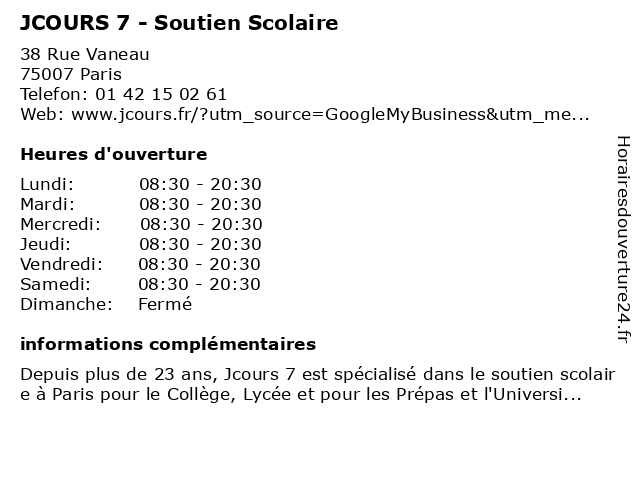1 Cercle Du Groupement De Soutien De Base De Defense De Paris - Ecole Militaire (Distance: 0,72 km) Case 35 Paris 7, 75007 Paris base, cercle, defense, ecole, groupement, militaire, paris, restaurants, soutien 2 Clevermate - Soutien Scolaire Ciblé (Distance: 2,34 km) 10 Rue De Penthièvre, 75008 Paris ciblé, clevermate, coaching, cours, paris, scolaire, soutien 3 ENSPF - Ensemble Scolaire Eugène Napoléon Saint Pierre Fourier (Distance: 4,17 km) 13 rue de Prague, 75012 Paris ensemble, enspf, eugène, fourier, napoléon, pierre, saint, scolaire, école 4 ENSPF - Ensemble Scolaire Eugène Napoléon Saint Pierre Fourier (Distance: 5,27 km) 252 ter rue du Faubourg Saint Antoine, 75012 Paris ensemble, enspf, eugène, fourier, napoléon, paris, pierre, saint, scolaire, école 5 Espace Sportif Pailleron (Période scolaire) (Distance: 5,29 km) 32 rue Edouard Pailleron, 75019 Paris espace, formation, pailleron, piscine, période, scolaire, sportif 6 Cité Scolaire Hélène Boucher (Distance: 5,91 km) 75 cours de Vincennes, 75012 Paris boucher, cité, college, cours, hélène, lycée, scolaire, école, éducation |