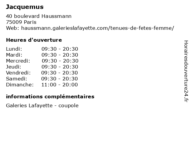 | Samedi | 09:30-20:30 |