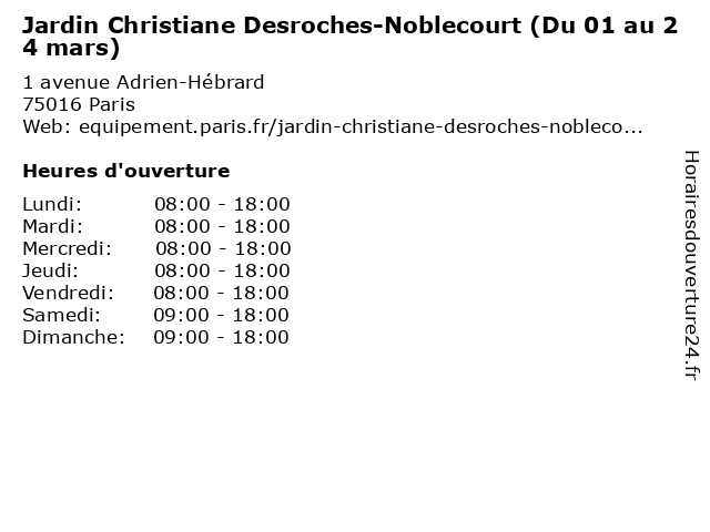 Termes de recherche pour Jardin Christiane Desroches-Noblecourt (Du 01 au 24 mars):du, au, 01, jardin, mars, parc, square, 24, christiane, desroches, noblecourt |