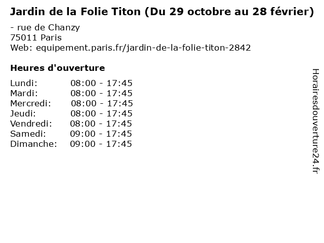 Termes de recherche pour Jardin de la Folie Titon (Du 29 octobre au 28 février):la, du, de, au, jardin, folie, parc, square, 28, octobre, 29, février, titon |
