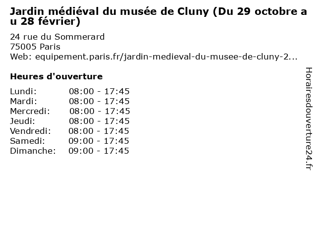 Termes de recherche pour Jardin médiéval du musée de Cluny (Du 29 octobre au 28 février):du, de, au, musée, jardin, parc, square, cluny, médiéval, 28, octobre, 29, février |