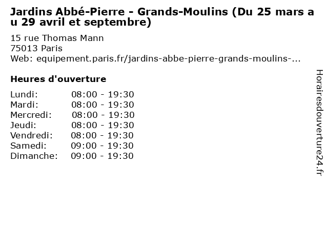 Termes de recherche pour Jardins Abbé-Pierre - Grands-Moulins (Du 25 mars au 29 avril et septembre):du, et, pierre, moulins, au, grands, jardin, mars, parc, jardins, square, septembre, 29, avril, 25, abbé |