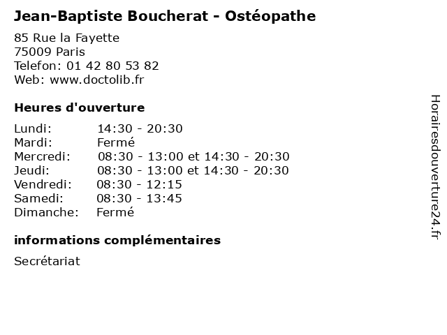 1 Dr Jean-Baptiste Chong Kan - Orthodontiste (Distance: 0,49 km) 124 bis Boulevard de Magenta, 75010 Paris baptiste, chong, consultation, docteur, dr, jean, kan, med, médecin, orthodontiste, traitement 2 Dr Baptiste Eugène - Médecin Généraliste (Distance: 1,02 km) 12 Rue du Faubourg Saint-Martin, 75010 Paris 75010, baptiste, dr, eugene, eugène, généraliste, martin, médecin, paris, plus, saint, santé 3 Jean-Baptiste Demilly - Ostéopathe (Distance: 1,57 km) 119 Rue Saint-Denis, 75001 Paris actes et symptômes, baptiste, demilly, expertises, jean, ostéopathe, ostéopathie crânienne, ostéopathie pédiatrique 4 Maître Jean-Baptiste Van de Voorde - Avocat (Distance: 1,67 km) 48 Rue Cambon, 75001 Paris avocat, baptiste, de, droit, jean, maître, négociation, van, voorde 5 Castelluccia Jean-Baptiste (Distance: 1,97 km) 3 Rue de Constantinople, 75008 Paris baptiste, castelluccia, guitars, instrument, jean, musical, store 6 Maître Jean-Baptiste Lafitte - Avocat (Distance: 2,02 km) 11 Boulevard de Sébastopol, 75001 Paris avocat, baptiste, jean, justice, lafitte, lois, maitre, maître |